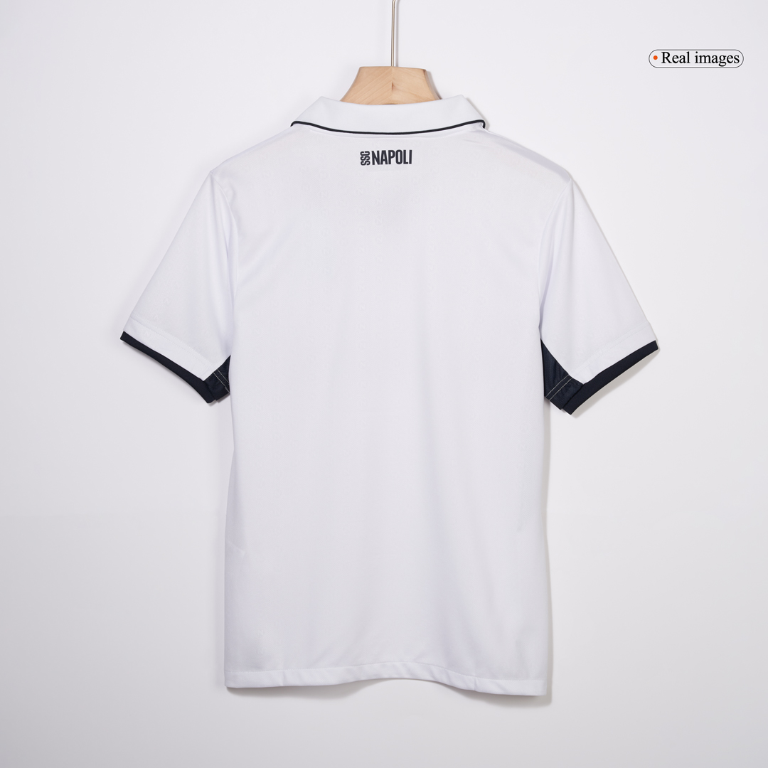 Description about the Napoli jersey: Designed by EA7, this Napoli jersey 2024/25 has a simple and clean look that pays homage to the club’s rich history. The Napoli jersey 2024/25 features the most iconic black and white colour palette, with no third colour found on the Napoli camiseta futbol 2024/25. The black colour is incorporated on the collar, cuffs and side panels of the Napoli jersey. Moreover, let’s look at the updated club logo. It features a minimalist design in the tradition of the Napoleonic ‘N’, which is an understated yet striking little detail. The Napoli jersey 24/25 features a v-neck design that adds a touch of vintage glamour. With no doubt, this Napoli jersey that seamlessly blends classic football style with modern design aesthetics.