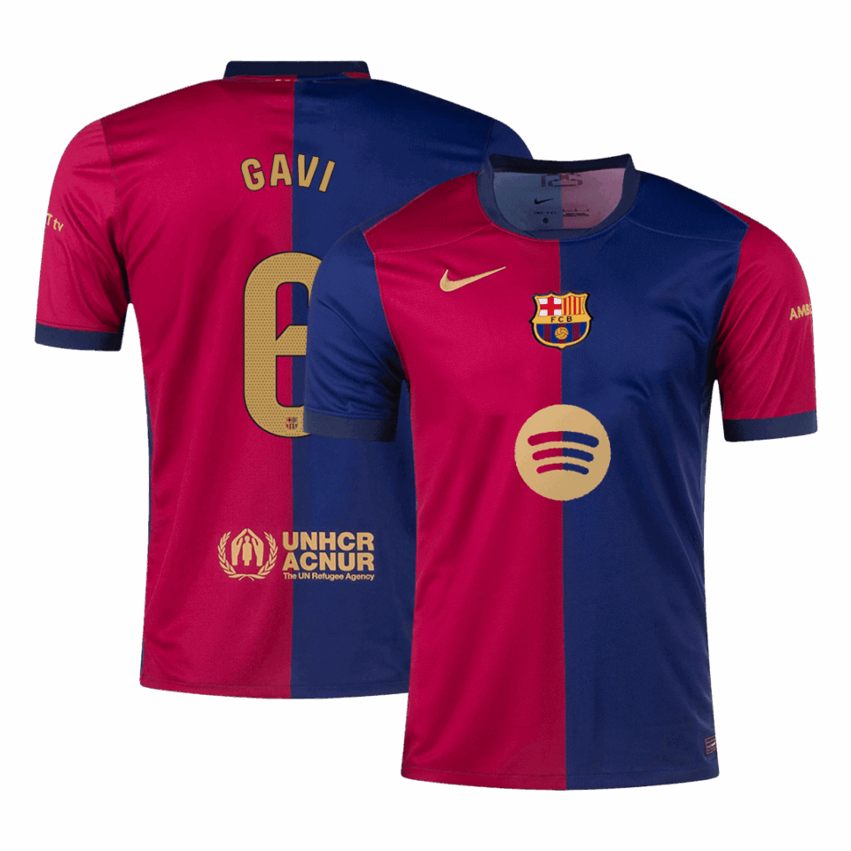 GAVI #6 Barcelona Home Soccer Jersey 2024/25 – Spotify Logo Without Text